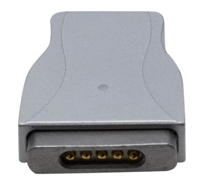 Adaptateur compact permettant d'utiliser un cordon USB-C de n'importe quelle longueur pour recharger un ordinateur Apple par MagSafe 2 depuis n'importe quelle source électrique et cordon USB-C supportant une puissance de charge de 85W