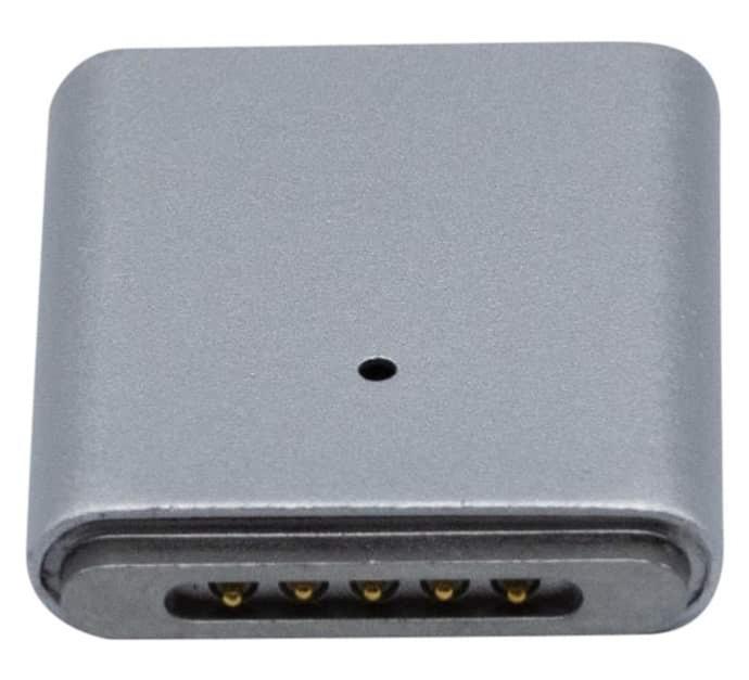 Adaptateur compact permettant d'utiliser un cordon USB-C de n'importe quelle longueur pour recharger un ordinateur Apple par MagSafe 3 depuis n'importe quelle source électrique et cordon USB-C supportant une puissance de charge de 140W