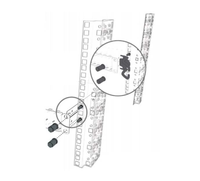• Se glisse simplement entre les montants 19" des baies et coffrets et les pattes de fixation des équipements rackables tels les panneaux de brassage, les switchs...
