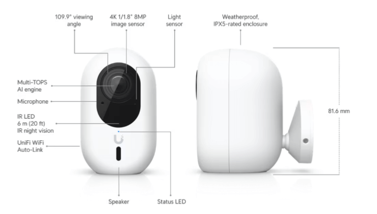 • Fonctionnement : managé avec UniFi Protect  pour mobile