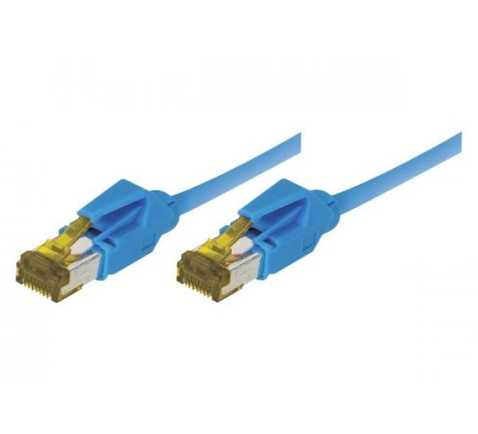 Cordon patch 10 gigabit Ethernet assemblé avec câble Draka Catégorie 7 et connecteurs Hirose Catégorie 6A Bleu 1 mètre