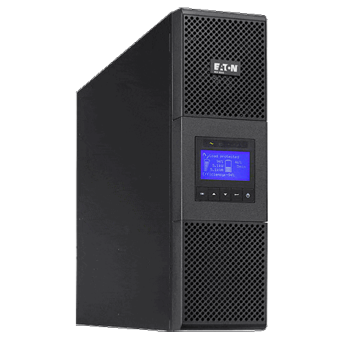 Onduleur Eaton 9SX 5 KVA 4500W Online double conversion avec système PFC. Format convertible Tour/Rack 3U. Mesure de l'énergie au niveau des groupes de prises. bornier + 8 prises IEC C13 et 2 prises IEC C19