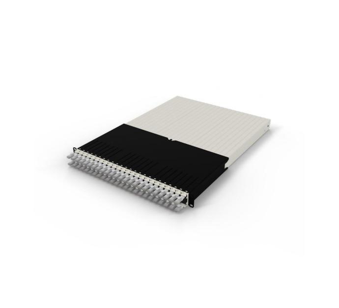 • Panneau rackable 19 pouces hauteur 1U profondeur 600 mm équipé de 24 cassettes amovibles (1 cordon par cassette)