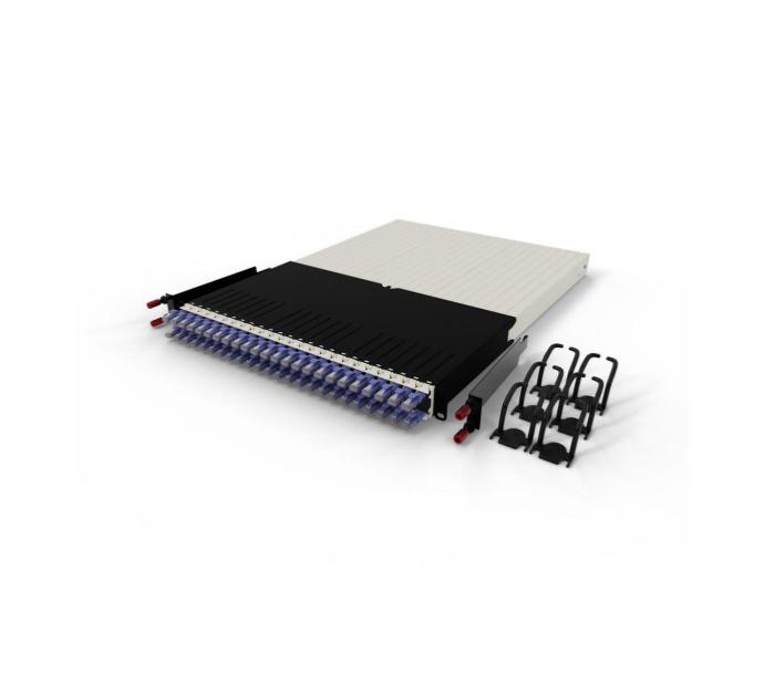 • Panneau rackable 19 pouces hauteur 1U profondeur 600 mm équipé de 24 cassettes amovibles (1 cordon par cassette)