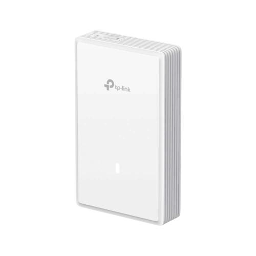 Point d'accès de type boitier mural pour l'intérieur avec WiFi 7 ax/be bi-bande 3600 Mbps, 2 ports RJ45 2,5 gigabits dont 1 port PoE in et 1 port PoE out, 2 ports RJ45 gigabit, mode autonome ou managé avec Omada, itinérance transparente, fonction mesh
