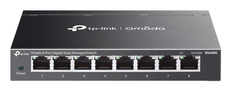Switch de bureau Omada avec 8 ports RJ45 gigabit. Commutation 16 Gbps. Administration centralisée Cloud Management ou via Omada App. Plug & Play et fonctionnement silencieux
